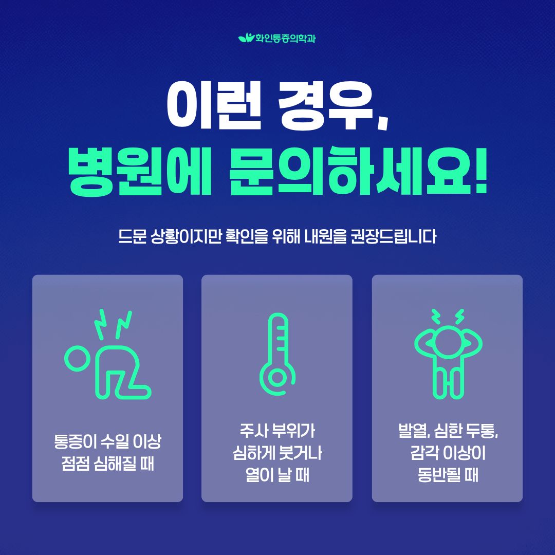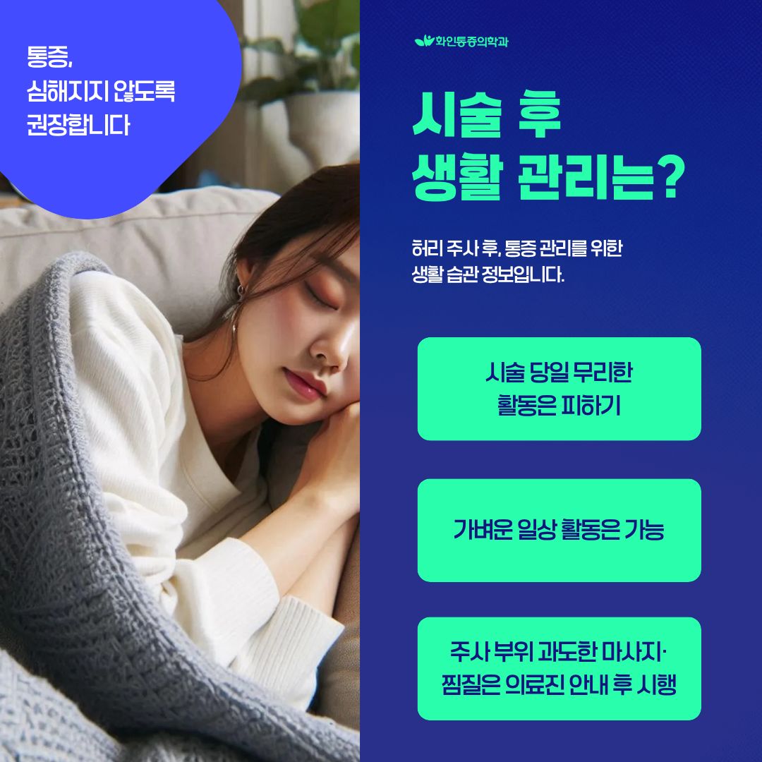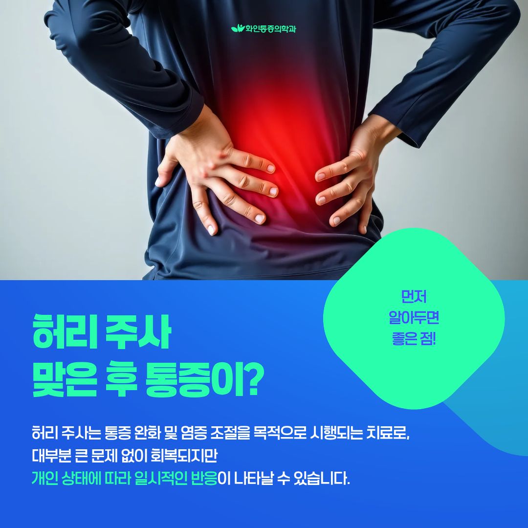 | 통증의학과 허리 주사 후 생길 수 있는 통증 반응과 부작용, 관리법 |